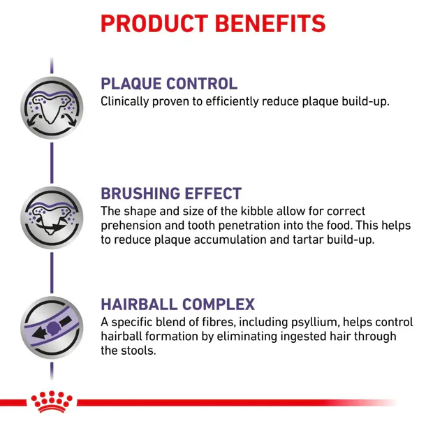 This specialized dry food is engineered for feline oral health, with clinically proven plaque control and a dual-action design to support both dental wellness and hairball management. It combines kibble technology with targeted fibers for holistic cat care.
